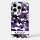Customize this purple, black, gray and white camouflage iPhone 16 pro case with your name in a trendy modern CAP font in gray on white. It's so modern, girly and trendy! Perfect for any country girl!