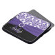 This personalised black and purple damask laptop sleeve with a FAUX ribbon and jewel brooch has text boxes for you to customise with your own name, initials, business name, or other text. If you need any help customising, please email niteowlstudio@gmail.com.