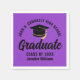 This modern purple and black custom graduation party paper napkin features typography of your high school or college name for the class of 2025. Customise with your graduating year under the chic handwritten script and grad cap for a great personalised graduate decor.