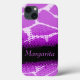 Bright animal patterned case in black, white and bold purple hues. Personalise this item with your own name. Currently reads Margarita. This original pattern by Sarah Trett, is based on the patterning found on a giraffe with a halftone moiré dot gain pattern overlay.