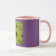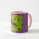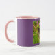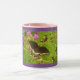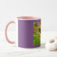Purple Combo Mug with Black Monarch Feeding on Flower Nectar and Summer Foliage Background..
