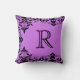 Purple & Black Monogram Damask Pillow