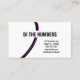 A purple and black numbers background on this design features a photo placeholder on the left with template name on the right. The back includes a coordinated design and colours with text fields for the business name and details. Replace the placeholder photo with your vertical format photograph. Fill in the template fields or edit using the design tool to select a font style, size, and colour you like. The placeholder photo is courtesy pixabay.com.