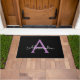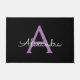 Black and Purple Simple Script Monogram Name and Initial House Doormat. This makes the perfect sweet 16 birthday, wedding, bridal shower, anniversary, baby shower or bachelorette party gift for someone that loves glam luxury and chic styles.