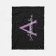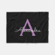 Purple Black Script Girly Monogram Name Fleece Blanket