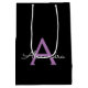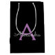 Purple Black Script Girly Monogram Name Medium Gift Bag