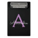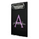 Purple Black Script Girly Monogram Name Mini Clipboard