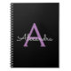 Purple Black Script Girly Monogram Name Notebook