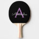 Purple Black Script Girly Monogram Name Ping Pong Paddle