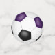 The front and back of each piece of this soccer birthday party confetti features the realistic image of a soccer ball that has purple, black and white panels - by katz_d_zynes