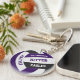 This sporty volleyball themed keychain for boys or girls features a realistic looking purple, black and white volleyball upon which you can customise the player's name, jersey number and court position, plus school or club name and mascot name in a varsity letter style font - by katz_d_zynes