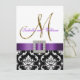 Sophisticated elegance is conveyed by this beautiful wedding invitation design. A black and white floral damask pattern serves as a background for a photo effect of the Metallic Gold Initial M and a purple satin ribbon and diamond brooch ALL PRINTED on FLAT CARD Wedding Invitations. A perfect way to invite your guests to your wedding. Contemporary, yet classic damask pattern with a design which allows you to personalise the front with your names and the back is free to add your customised wedding invitation text. Wedding Invitation is set for monogram initial "M". For other letters and colours please contact designer at luxuryweddinginvitations@gmail.com. Layout Design by Elke Clarke©. Graphics licensed. Also, choose from a variety of fonts and beautiful papers to make your wedding invitations PERFECT!