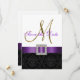 Sophisticated elegance is conveyed by this beautiful wedding Save the Date Card design. A black on black damask pattern serves as a background for a photo effect of the Metallic Gold Initial M and a purple satin ribbon and diamond brooch ALL PRINTED on FLAT CARD Save the Date Wedding Announcements. The background colour on the damask can be changed using the "customise it" option. A perfect way to announce your upcoming wedding. Contemporary, yet classic damask pattern with a design which allows you to personalise the front with your names and the back is free to add your customised save the date text. Wedding Invitation is set for monogram initial "M". For other letters, different ribbon colour and background please contact designer at luxuryweddinginvitations@gmail.com. Layout Design by Elke Clarke©. Graphics licensed. Also, choose from a variety of fonts and beautiful papers to make your wedding invitations PERFECT!
