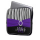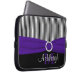 This personalised black and white striped laptop sleeve with a purple FAUX ribbon and jewel brooch has text boxes for you to customise with your own name, monograms, business name, or other text. If you need any help customising, please email niteowlstudio@gmail.com.