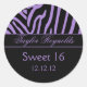 Purple and black Zebra with purple writing - use as envelope seals for your invitations. Great for graduation announcements too! Personalise with your own information. If you need to move the text, or change the size, font or colour, click Customise it. If you need help, or would like this design on another product, please click "Contact" under the product or email shutterbug600@yahoo.com