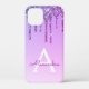 Purple Bling Ombre Sparkle and Faux Dripping Glitter Girly Modern Monogram First Name and Initial Smart Phone Case. Please contact the designer for matching items