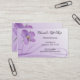 Promote your company with this exclusive business card design featuring a purple floral bloom adorned with delicate lavender swirls. Customisable text allows you to personalise, alter fonts and change text colours and sizes. An affordable solution to promote your business in the sales, health and beauty, gift shop or artistic industries.