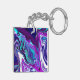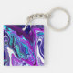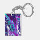 Purple, Blue and Teal Abstract Fluid Art Key Ring