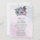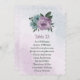 Unique table number seating chart card featuring romantic dusty purple and blue flowers and green leaves.