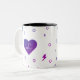 This mug is unique with custom initials on both sides of the cup and a bright purple gradient lightening bolt, and heart design. Makes a great gift custom gift!