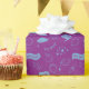 Fun and quirky wrapping paper featuring hand drawn illustration of graduation and school related motifs in purple and blue.