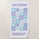 This personalised beach towel features a groovy retro-style daisy in a checkboard pattern in blue and purple. It’s ideal for various outdoor activities, whether you're lounging at the beach, enjoying a vibrant pool party, or having a relaxing picnic in the park. These towels not only serve a practical purpose but also make for a heartfelt gift, as they can be customised with the recipient's name. Treat someone special to a gift that combines functionality with a personal touch!