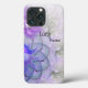 This case is adorned with a delicate lacy fractal flower design of purples, blues, and greens. Fill in the template fields with a name, quote or slogan, remove all text or edit using the design tool to select a font style, size, and colour you prefer.