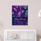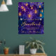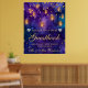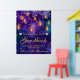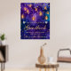 Watercolor background in deep purple and cobalt blue. Hanging golden lanterns with warm glow and fairy light chains. Scattered gold dots for festive ambiance. Silver glitter heart accents for added charm. Ideal for gift bags, invitations, signage, and party accessories