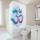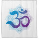 A purple and blue gradient Om symbol rests atop a soft lavender and blue mandala flower, beautifully printed on a crisp white shower curtain. This calming design brings peaceful energy to your bathroom, turning everyday routines into moments of mindfulness and serenity.