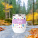 Enjoy every sip with this Personalized Purple Pink Blue Boho Wildflower Wine Tumbler featuring hand-painted florals and your name on a lavender band. Cheerful, colorful, and beautifully boho.
