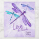 A unique purple wine label with whimsical blue, purple, & turquoise dragonflies. Watercolor textures will dazzle on a variety of bottle labels, package labels, and bakery stickers. Easily transfer the purple dragonfly bottle label to other cards and gifts. Versatile for lilac, lavender, turquoise, aquamarine colour themes.