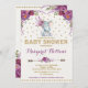Purple Boho Floral Elephant Baby Shower Invite