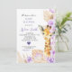 Purple Boho Floral Giraffe Girl Baby Shower Invitation