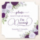 This wedding coaster is elegant, stylish, and fun! It features a beautiful boho chic floral design with hand painted watercolor roses in shades of purple, plum and lavender along with garden eucalyptus leaves and foliage. The text is written in elegant modern script lettering and reads "Please don't take my drink, I'm dancing" with space for the names of the couple and wedding date at the bottom. Great memento for your guests and also a practical way to let the wait staff know not to clear the drinks just yet!