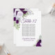 These elegant wedding table cards feature a rustic boho chic design with hand painted watercolor roses in shades of purple, plum, and lavender. The card includes a list of names so your guests will have an easy time finding the right table.