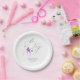 Elegant modern and cute purple and gold bow baby shower paper plates, "It's a Boy"