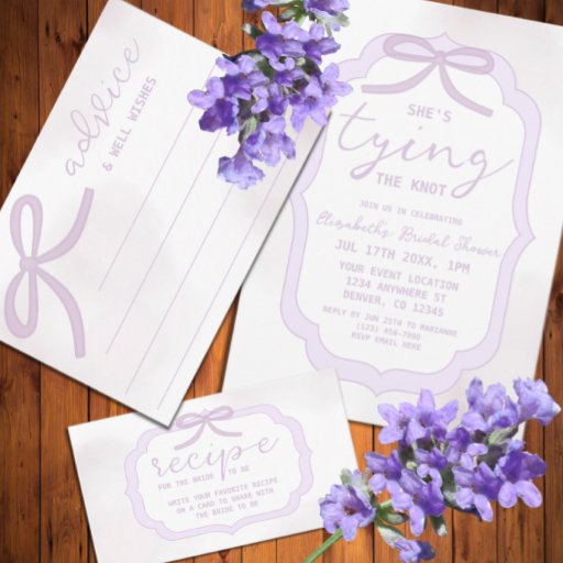 She's tying the knot! Watercolor purple bridal shower with hand drawn bow