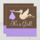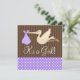 Purple Brown Stork Dots Girl Baby Shower Invitation