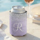Purple Brushed Metal Silver Glitter Monogram Name Can Cooler