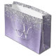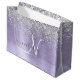 Purple Brushed Metal Silver Glitter Monogram Name Large Gift Bag