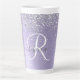 Purple Brushed Metal Silver Glitter Monogram Name Latte Mug