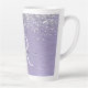 Easily personalise this trendy chic latte mug design featuring pretty silver sparkling glitter on a purple brushed metallic background.