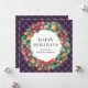Purple Buffalo Plaid Holly Berries Wreath Business Holiday Card
