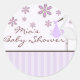 This modern customisable Baby Shower sticker features a baby girl, bird & purple flowers on a purple & white striped background. Customise it by adding your details in the font of your choice!