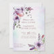 Purple burgundy lilac flowers with bird and feathers bridal shower invitation.