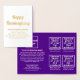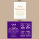 Happy Thanksgiving! A holiday to celebrate and to thank for the blessings that we received. It is also one of the holidays to advertise your business or to promote your brand name to customers or clients. Customisable foil card that you can put your business brand, your products or services and with Thanksgiving greeting. You can put up to 4 products. Customise it and use it as marketing material to advertise your brand name and to promote your business products or services. Foil card that you can use to build brand name awareness. Design colours are gold foil texts on front side and in the inside are pink and white texts on purple background. To customise this foil card, upload your business logo, images of your products or services, type your business name, short attractive description of your business and products or services, names of your products or services, address, phone number, e-mail and website or your business social media page. Please check the appearance on all sides after uploading logo, images and typing texts. If the appearance is pleasing to you, you can place your order now. If you need to resize and move the logo, images and texts to fit on this card, please change in the design tool. You can also make other changes according to the appearance of this card that you prefer in the design tool such as changing the background colour, font colour and font style. Happy Thanksgiving! Wishing you more sales this holiday.