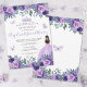 Watercolor Floral Purple Quinceañera Invitation with Butterflies. This enchanting design brings a whimsical floral garden theme to life, perfect for a Quinceañera celebration. The front features delicate watercolor roses and flowers in a mix of deep purple, lilac, and violet hues, accented by soft green leaves. Charming watercolor butterflies flutter throughout, adding a magical touch. A mix of classic serif fonts and elegant script typography enhances the design’s sophistication and playful charm.