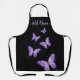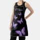 Several purple butterflies on a black background. If she loves purple, this apron is for her. Add a name to personalise.