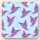Purple Butterflies on Light Blue, Butterfly Print Coaster