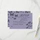 This lovely and very elegant butterfly themed custom wedding RSVP card is fully customisable. It features purple and black fluttering butterflies. Simply use the templates to the right of the product image or click the customise button to personalise and make it your own.
